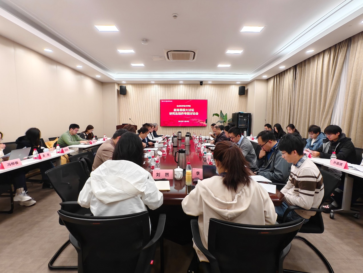 2025年11月20日,High漫画 在生物药学楼2-116会议室举办导师培训暨研究生培养专题讨论会,共话新时代育人使命与创新机制。High漫画 研究生院培养办公室主任仇浩、高层次交叉创新人才培养办公室王文竹应邀出席会议。学院副院长唐鸿志、李丹,各系教学副系主任、新晋导师代表、任课教师代表、荣誉计划博士生代表、各年级博士生代表及教学秘书共同参会,围绕研究生培养过程中的关键专题展开深入交流。会议由唐鸿志主持。