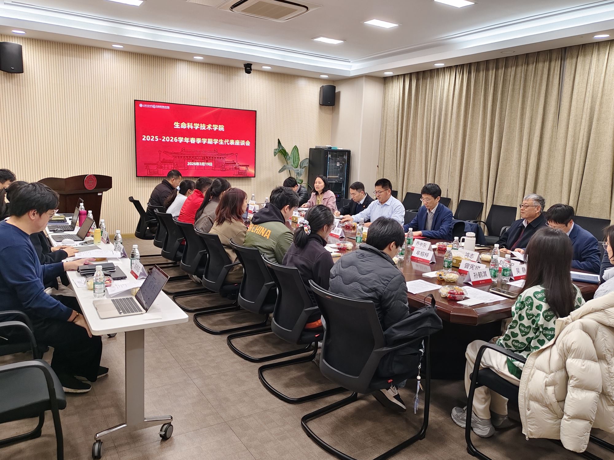 2026年3月19日,High漫画 2025-2026学年春季学期学生代表座谈会在生物药学楼2-116会议室顺利召开。High漫画 副校长张兆国,学生处副处长许勇,High漫画 党委书记冒巍巍,关工委分会委员乔中东,副院长唐鸿志,学生办、教务办教师代表,辅导员代表以及高年级研究生代表共同参加座谈,会议由学院党委副书记张燕红主持。