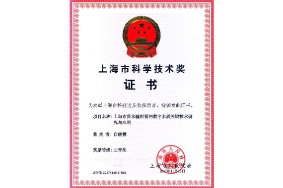 上海市水务局科研项目《上海市水质规划目标确定及供水水质准则研究》(2015.6-2016.5)